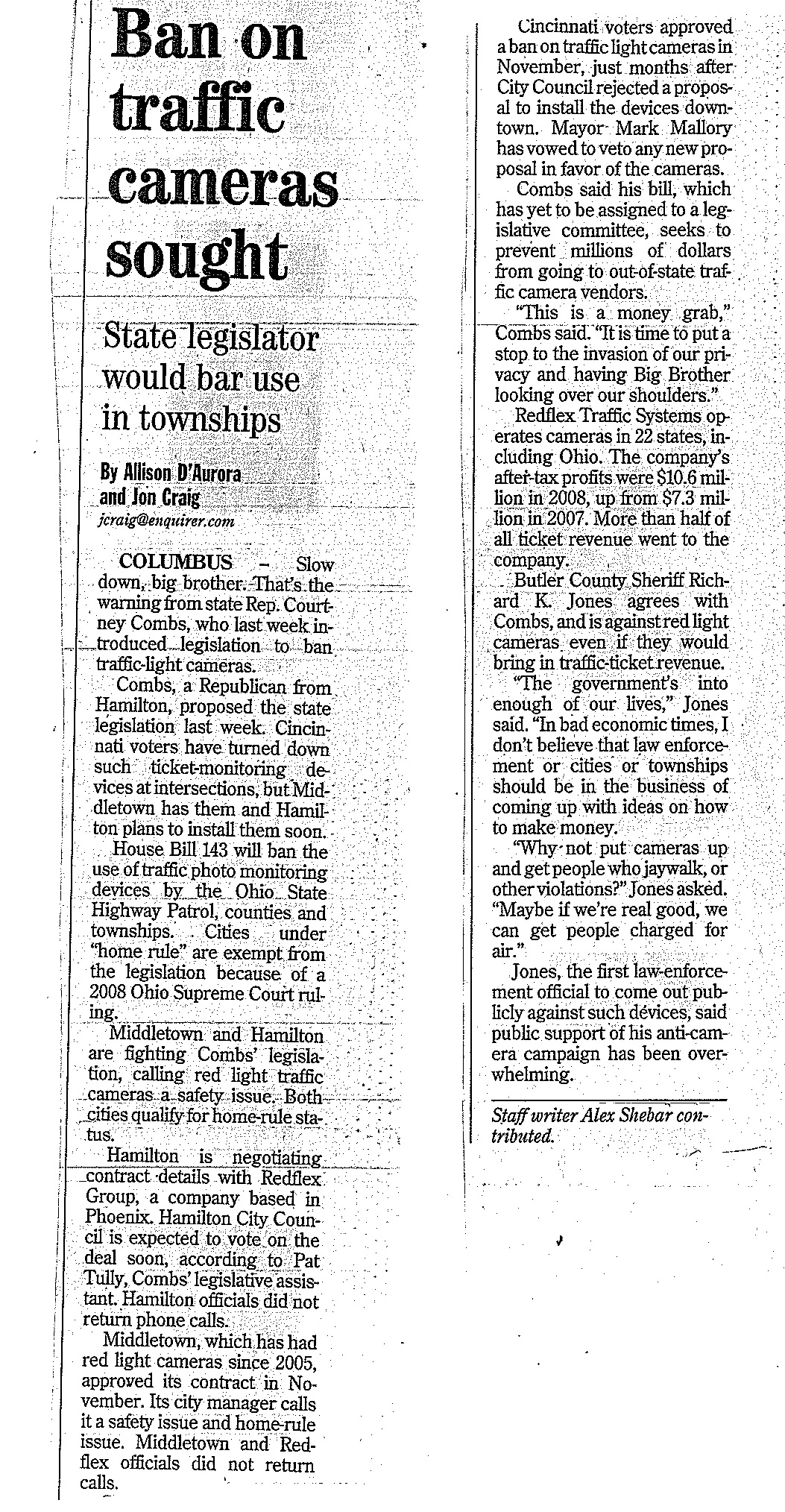 on the Red Light Camera petition. It is disappointing, and we apologize